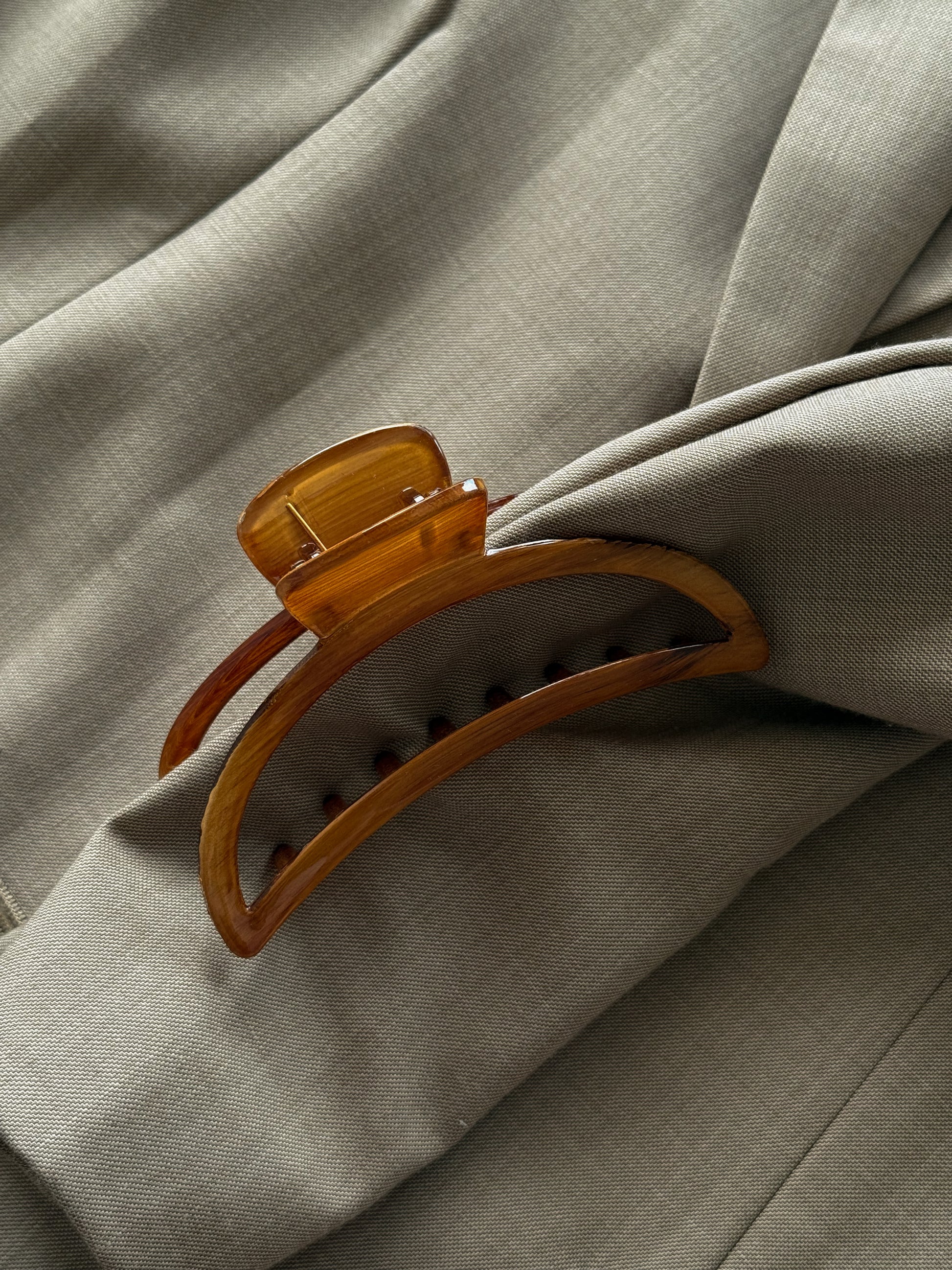 The Épure Clip – Large Amber Curve features a softly curved, organic silhouette with a warm translucent amber finish.