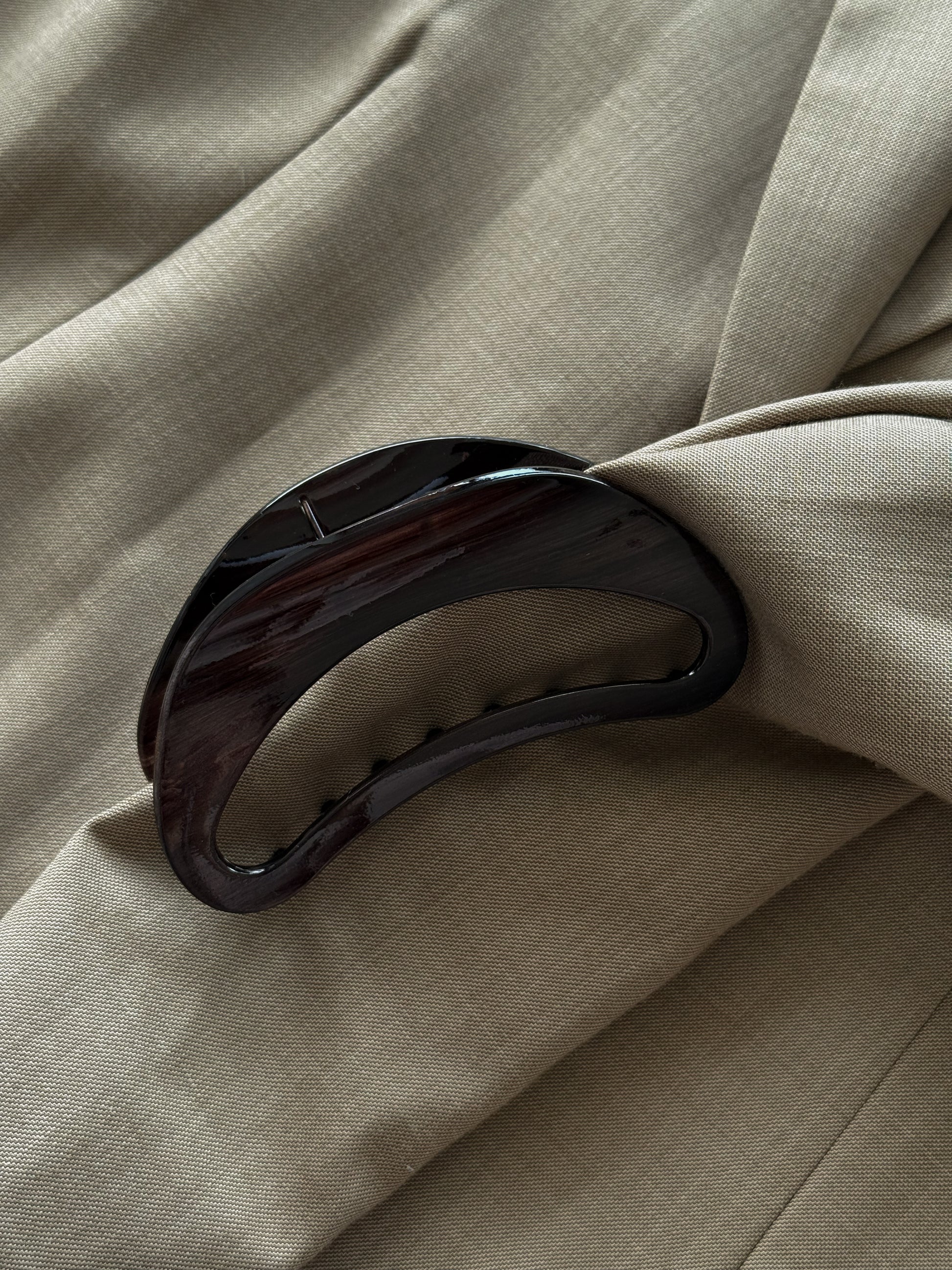 The Épure Clip – Large Espresso Curve features a softly curved silhouette in a deep espresso finish, creating a refined and understated look.