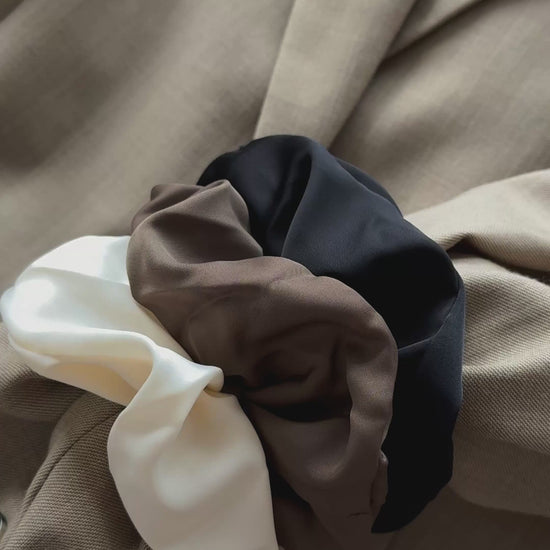 A curated set of three oversized satin scrunchies designed to softly elevate your everyday look.